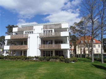 Das vor kurzem fertig gestellte Haus ist zwar optisch ein klassischer, moderner Berliner Neubau. Dieses Haus hat fünf außergewöhnliche Wohnungen, die jeweils über eine oder zwei Etagen reichen. Im Berliner Haus wurde jede Wohnung mit massiven Eichendielen und die Badezimmer mit großen Sandsteinkacheln ausgestattet. Die Deckenhöhen betragen drei Meter. Ein Fahrstuhl bringt Sie von jeder Etage bis zur Tiefgarage.
